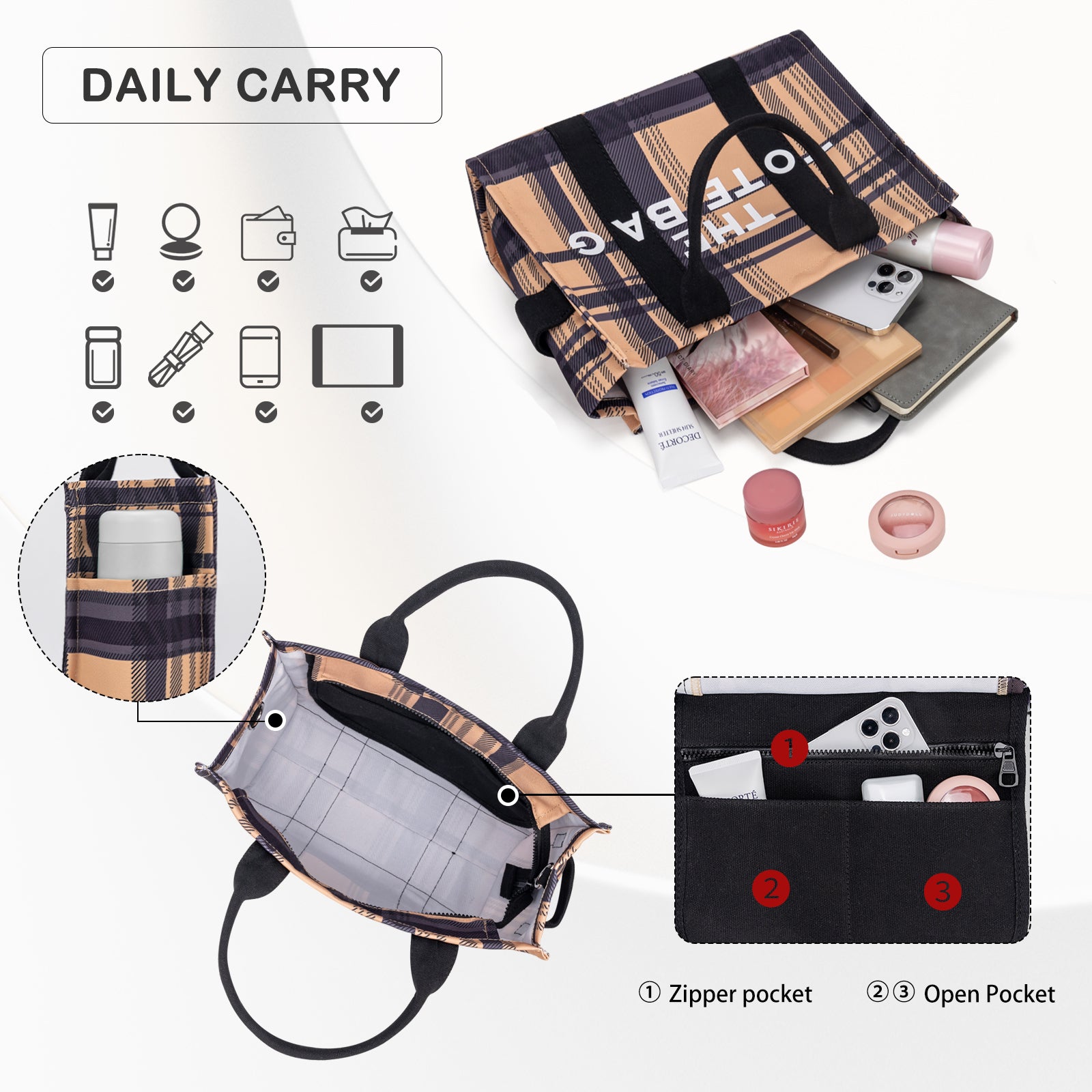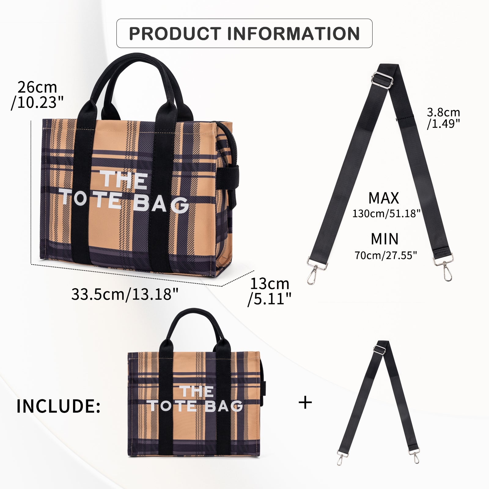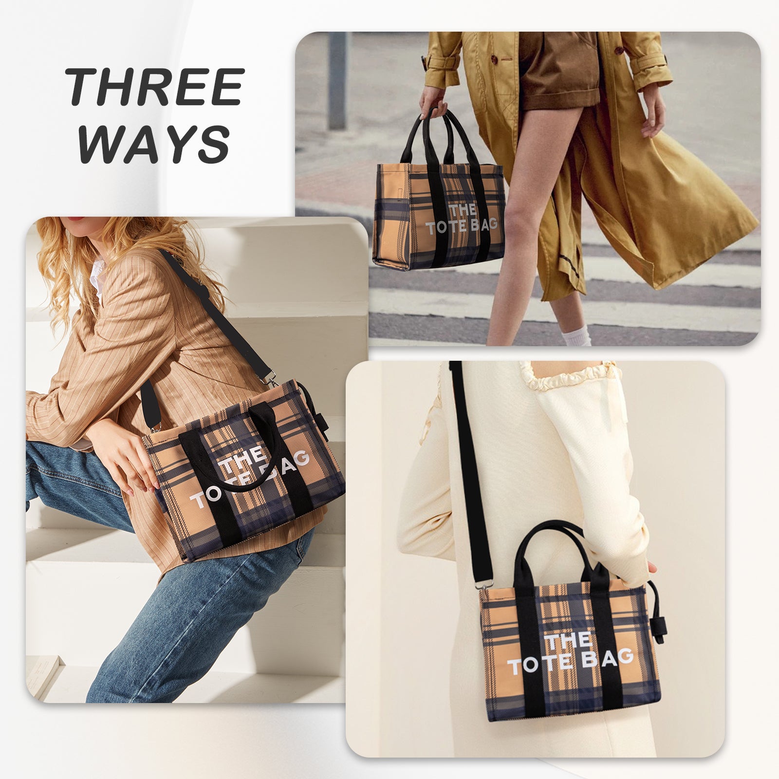 Large Plaid Canvas Tote Handbags for Women