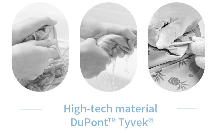 Water and stain resistant DuPont paper Tyvek® combines the advantages of paper, film and fiber in one package. Tough and durable, lightweight, yet strong. Waterproof, yet breathable.