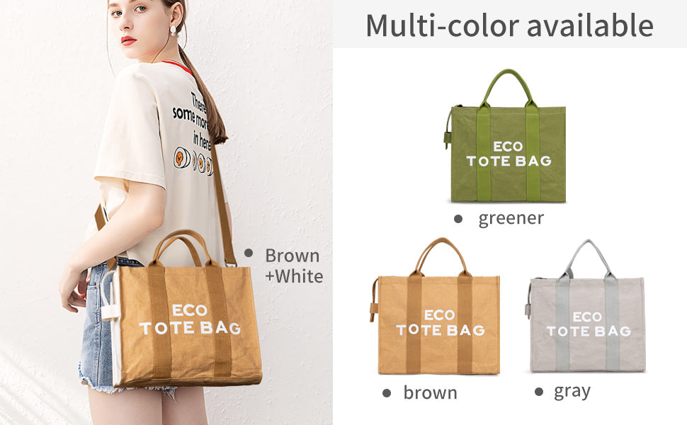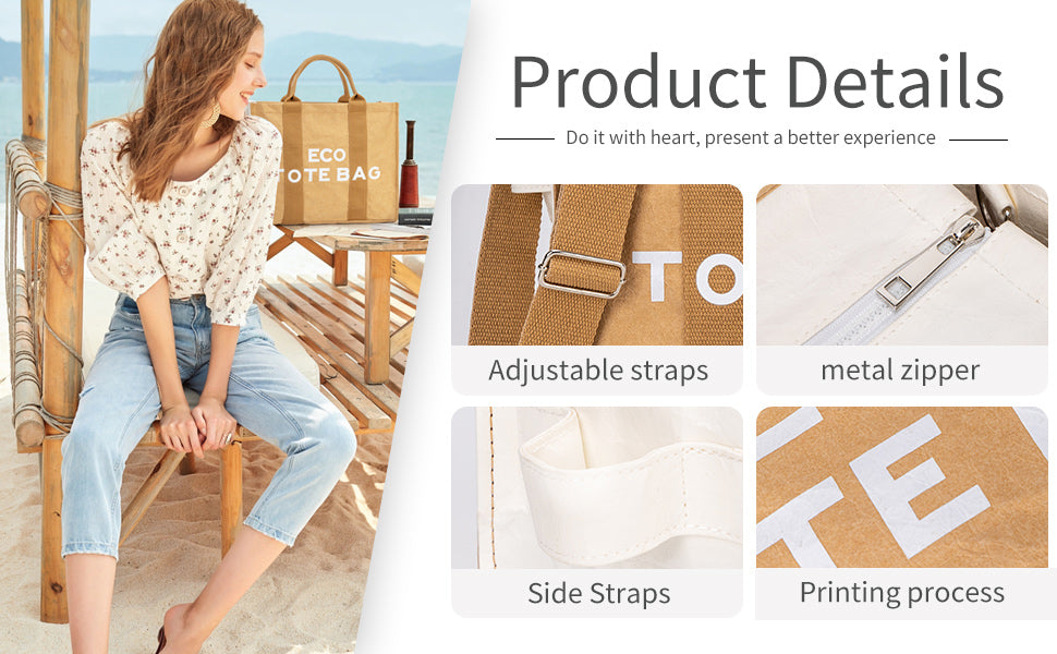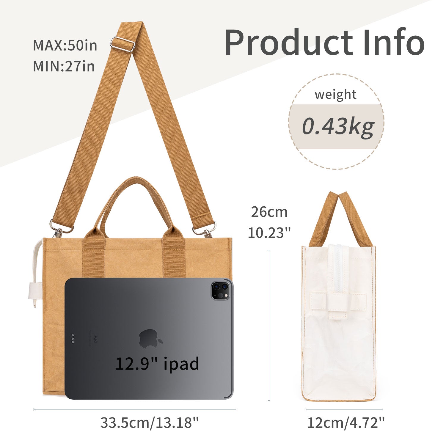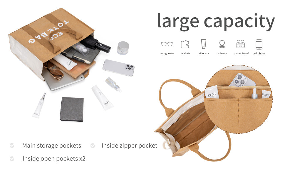 Washable Kraft Paper Tote Handbags Shoulder Bag with Zipper